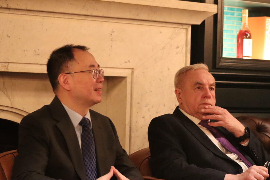 Ambasador Lu Shan i Józef Woźniakowski podczas dyskusji